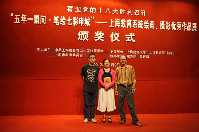10月9日下午,“五年一瞬间•笔绘七彩申城”上海教育系统绘画、摄影大赛颁奖仪式在上海图书馆举行。上海海事大学徐悲鸿艺术学院吴桂香教授和丁芊老师的油画作品《青春岁月》荣获一等奖,何平教授的国画作品《 金色季节》、吕宗奇老师的电脑画《上海想象》和《旅途》以及宣传部韩宝威老师的摄影作品《精彩世博》均获优秀奖。本次大赛共收到全市大、中、小学生及教师、教育工作者作品1400余件,生动呈现了城市、生活、社会的变迁和教育改革的发展变化。作品从10月9日起至10月13日在上海图书馆第一展览厅集中展览。宣传部,文理学院