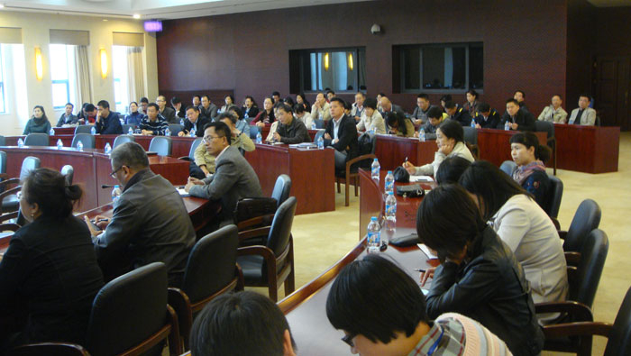 教务处张秋荣处长从明确迎评工作指导思想、建立健全管理机构、制定学校迎评工作实施方案、开展多种形式宣传教育、鼓励教职工进行语言文字方面的科学研究、开展教职工和学生普通话水平培训和测试工作、开展校园用语用字检查等九方面汇报了我校前期语言文字迎评工作进展情况,并介绍了我校迎评工作下一步安排和评估专家进校的评估流程。
