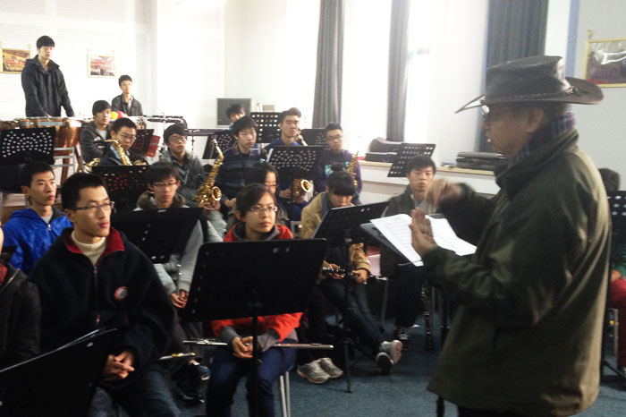 荣艾国大校肯定了我校管乐团的演奏水平,并根据乐团情况对学生演奏状况进行相关辅导,同时对学生进行军乐团行进步伐专业指导。荣艾国大校和我校指挥马骅老师商定了乐团进一步提高水平的方案及参赛演奏计划,并将在赛前定期来我校进行指导。