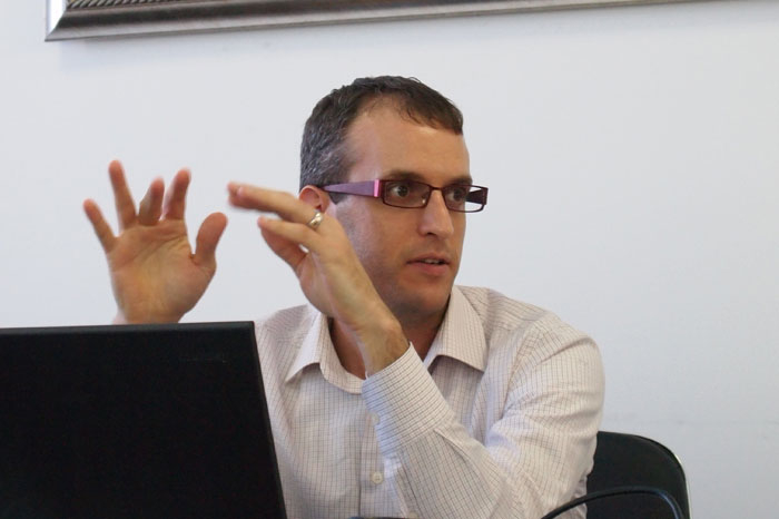 10 月26日上午午,应上海海事大学社会科学部和文理学院的邀请,美国重要政策智库——“美国进步研究中心(华盛顿)”经济学家亚当•赫什(Adam S. Hersh)教授在文理学院323会议室为我校师生作《美国的中产阶级、收入不平等和经济增长》学术报告。我校社会科学部教师、思想政治教育专业研究生及部分其他学院师生等近40人聆听报告,并与其就相关议题进行了交流互动。