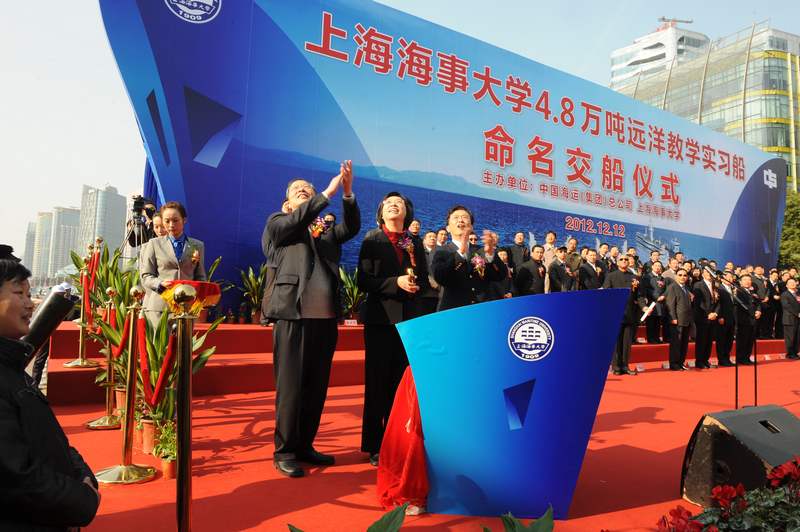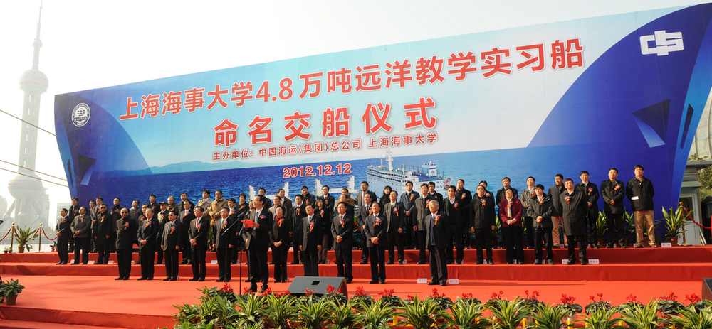 上海市2011年和2012年重大工程项目——上海海事大学教学实习船建造项目圆满完成。由中国海运集团所属中海工业公司承建的4.8万吨世界最先进远洋教学实习船今天(12月12日)在上海港国际客运中心码头正式交付上海海事大学。这是上海海事大学创新人才培养模式,提升教学科研水平,主动服务上海国际航运中心建设的有力举措。交通运输部副部长高宏峰,上海市委副书记殷一璀、副市长沈晓明,联合国国际海事组织海上安全司副司长Mahapatra先生,中国海运集团董事长李绍德、总经理许立荣等出席交船仪式并考察教学实习船。