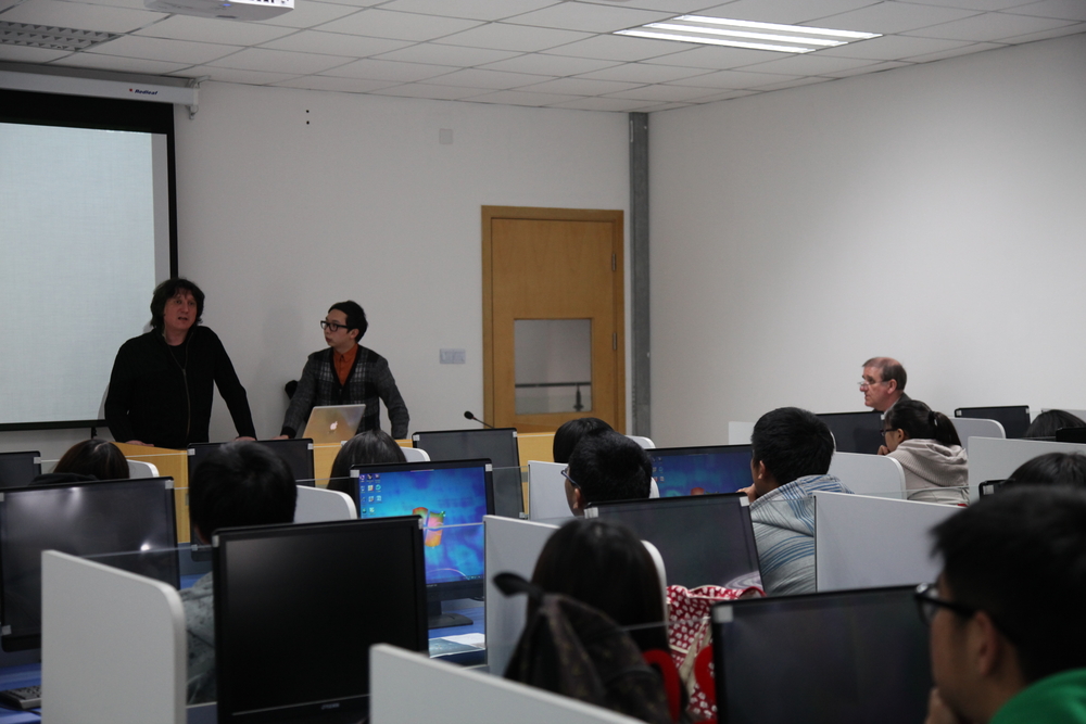 普利茅斯大学电影艺术系主任David Hilton教授向我校学生展示了来自英国的同龄人的精彩短片作品,以及他本人耗时2年精心制作的实验短片。数字艺术系主任Gianni Corino教授则通过2维编码,展示了如何将个人电脑作为“画笔”,创作出令人目眩神迷的视觉画面。
