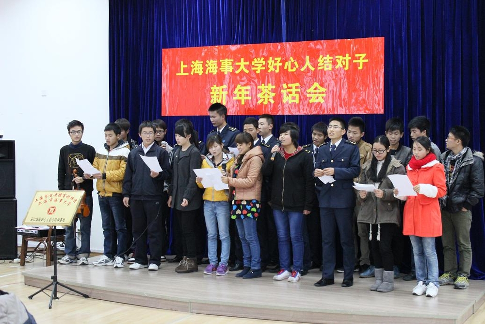 12月15日下午,上海海事大学举办社会好心人结对子新年茶话会。学生处李志鹏处长、上海市百老德育讲师团王仁华老师、近70名社会好心人以及78名受助学生参加活动。