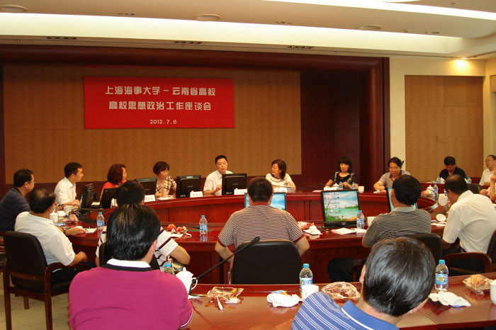 7月6日下午,云南省高校领导干部培训班一行来我校参观交流,并在行政楼128会议室举行“上海海事大学—云南高校思想政治教育座谈会”。我校党委副书记、副校长孔凡邨,云南省委高校工委副书记陶晴、组织部长陈丽娟、宣传部副部长徐华以及来自云南省各高校分管思想政治教育的40多位校领导参加了座谈会。会议由我校学生处处长李志鹏主持。