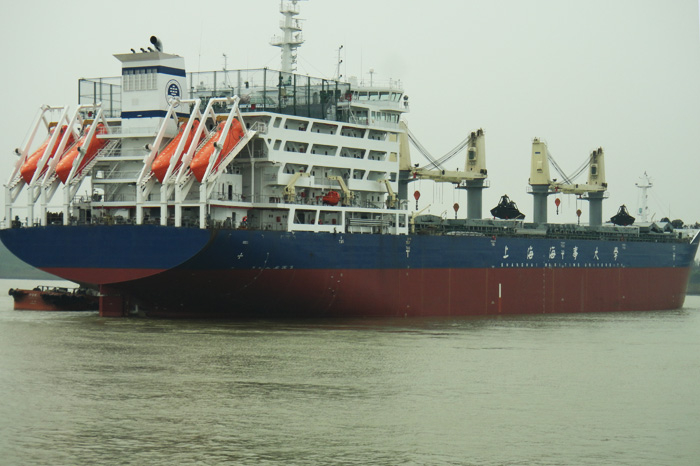 下午两点整,江苏省扬州市中海工业江苏造船基地1号舾装码头,蒙蒙细雨中,随着一声汽笛长鸣,我校4.8万吨远洋教学实习船在当地海事部门海巡艇的护航下,解缆离泊,驶入长江主航道。在之后7天的试航中,实习船将沿长江水域一路途经泰州、江阴、张家港、太仓、南通、上海,最后驶向深海大洋区域,检测完成数十种项目的试航任务。