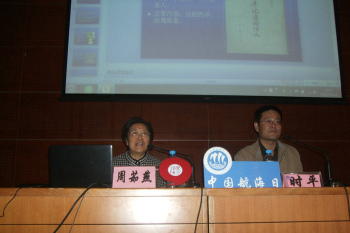 11月14日,由中国航海日办公室、中国海洋学会、中国太平洋学会、上海东方讲坛和上海海事大学联合主办的“2012•中国航海日文化论坛”第七场报告会在我校中远报告厅举行,华东师范大学周茹燕教授为200余名师生作了《海洋文学的视角——<西洋记>中的航海家形象》报告。报告会由上海海事大学海洋文化研究所所长时平教授主持。