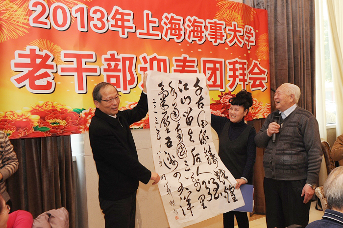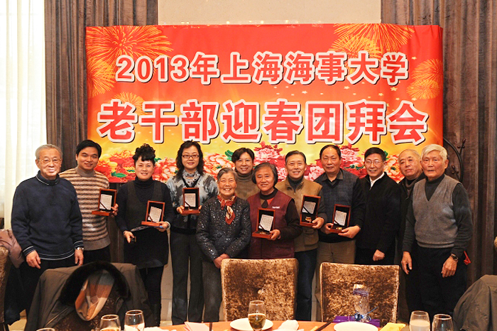 上海海事大学2013年老干部新春团拜会于1月10日上午举行。校领导於世成、黄有方、孔凡邨 、金永兴、肖宝家、杨万枫、门妍萍、王海威,部分职能部门负责人、学院(单位)党委(党总支)书记,以及全体离休干部、退休局级干部欢聚一堂,共话新春。