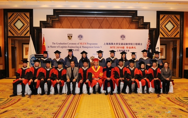 3月2日上午,上海海事大学与西澳大利亚大学合作举办的“物流工程管理”硕士项目第五届学员及交通运输学院“物流与港航管理”交通运输工程硕士2010级学员毕业典礼在浦东淳大万利酒店隆重举行。西澳大利亚大学教师代表约翰·坦普林教授,我校金永兴副校长及相关部门、学院负责人出席毕业典礼。典礼由交通运输学院施欣院长主持。