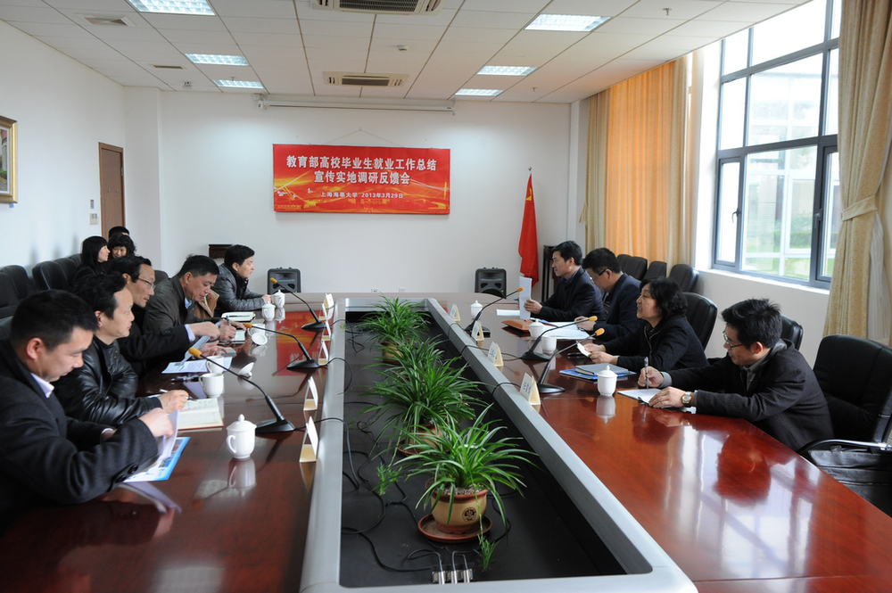 3月29日,教育部2012-2013年度高校毕业生就业总结宣传工作专家组一行来到上海海事大学,对我校人才培养及毕业生就业工作进行了实地调研。校党委书记於世成,校长黄有方,党委副书记、副校长孔凡邨,以及各学院党委书记,职能部门负责人等出席调研汇报会。