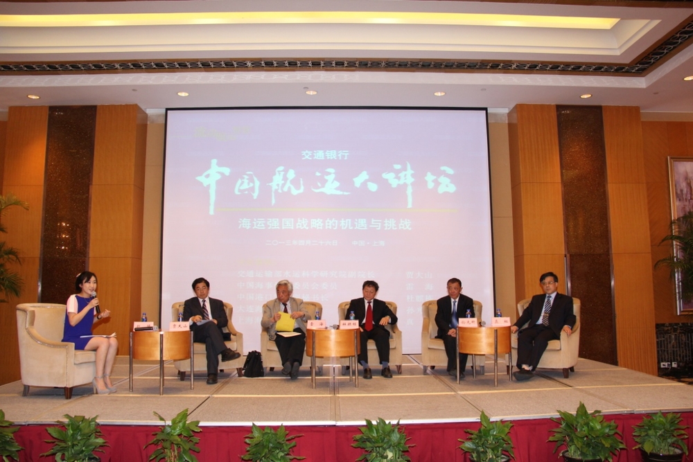 在嘉宾讨论环节,大连海事大学孙光圻教授、上海海事大学真虹教授、中国海事仲裁委员会委员雷海先生、中国港口协会杜麒栋副秘书长进行了热烈讨论,并分别从政府、航运中心、海事仲裁及海事教育等角度,就建设海运强国发表了看法。