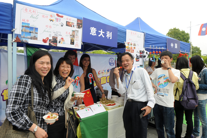 此次国际文化交流节以“世界窗口、友谊桥梁”为主题,主要分为异域风情展示和中外学生文艺汇演两部分。各个国家的留学生们纷纷搭建展棚,通过展示民族饰物、传统服饰、民族手工艺品和特色美食来展现各自的民族文化精髓。浓郁的异域风情吸引了许多中外师生前来参观,现场气氛热烈,每个展台都被围得水泄不通。