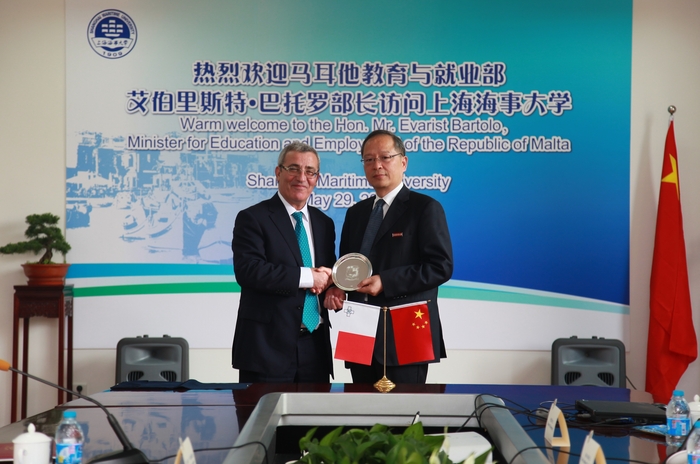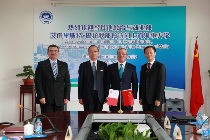5月29日,马耳他教育与就业部部长艾伯里斯特·巴托罗、马耳他大学校长卡米勒睿一行在上海市教委郭小慧女士的陪同下来上海海事大学访问,校党委书记於世成、副校长金永兴及国际交流处、国际教育学院等相关部门、学院负责人热情会见了来宾。