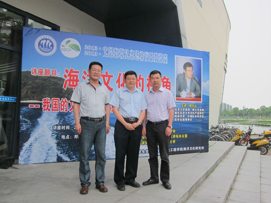 6月19日,由中国航海日办公室、上海东方讲坛、上海科普大讲坛办公室和上海海事大学等单位联合主办的“2013•中国航海日文化论坛”第四场报告会在我校邦建报告厅举行。北京大学周庆山教授为200多名师生作了《海洋文化的视角——我国的文化政策与沿海地区文化的发展》讲座。