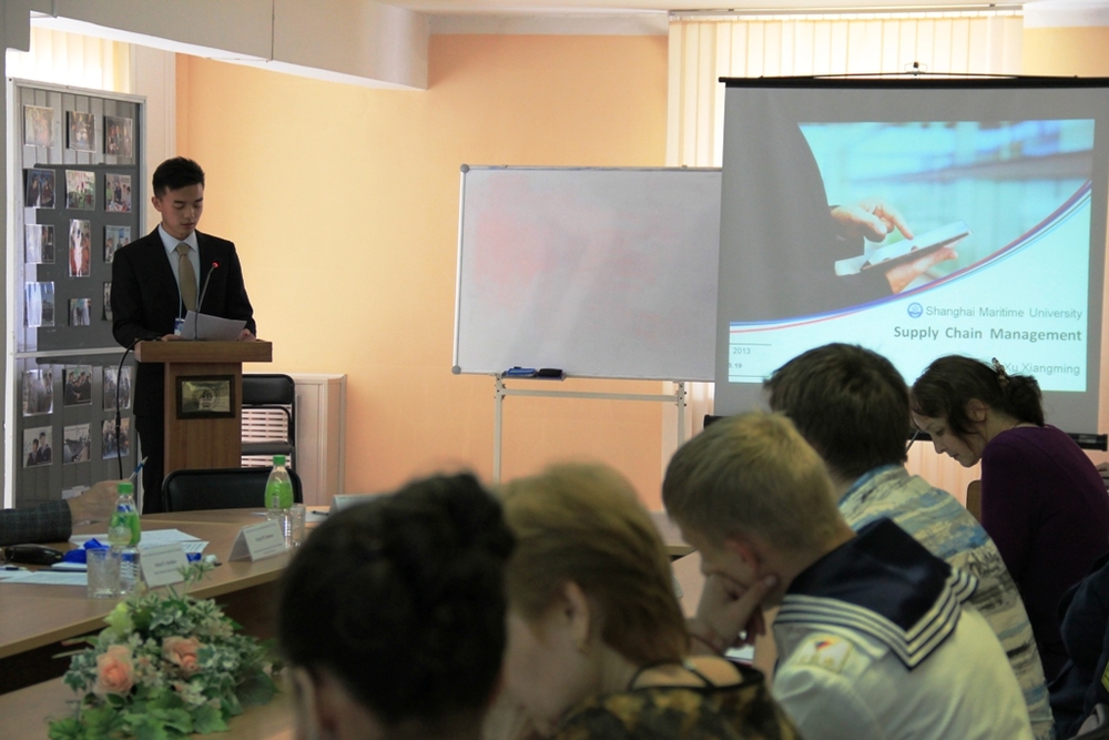 徐翔铭、张异昀两位同学作为发言代表,向与会学生代表进行了上海以及学校的推介并参加了“港口城市”专题研讨会,围绕“港口物流”“海洋污染治理”等主题与俄罗斯、美国、日本、韩国、越南等国家青年进行了深入探讨和交流。