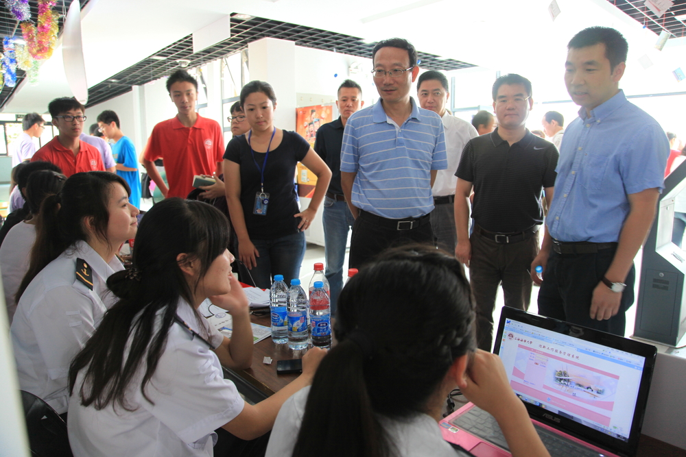 9月8日,上海海事大学临港校区内人声鼎沸,热闹非凡,来自全国各地的2013级4200余名本科生和1400多名研究生来校报到。校领导於世成、黄有方、孔凡邨、金永兴、肖宝家、门妍萍、王海威以及相关部门、学院负责人等前往学生服务中心和各学院报到点,视察新生报到工作,并亲切慰问新生、家长和迎新工作人员。
