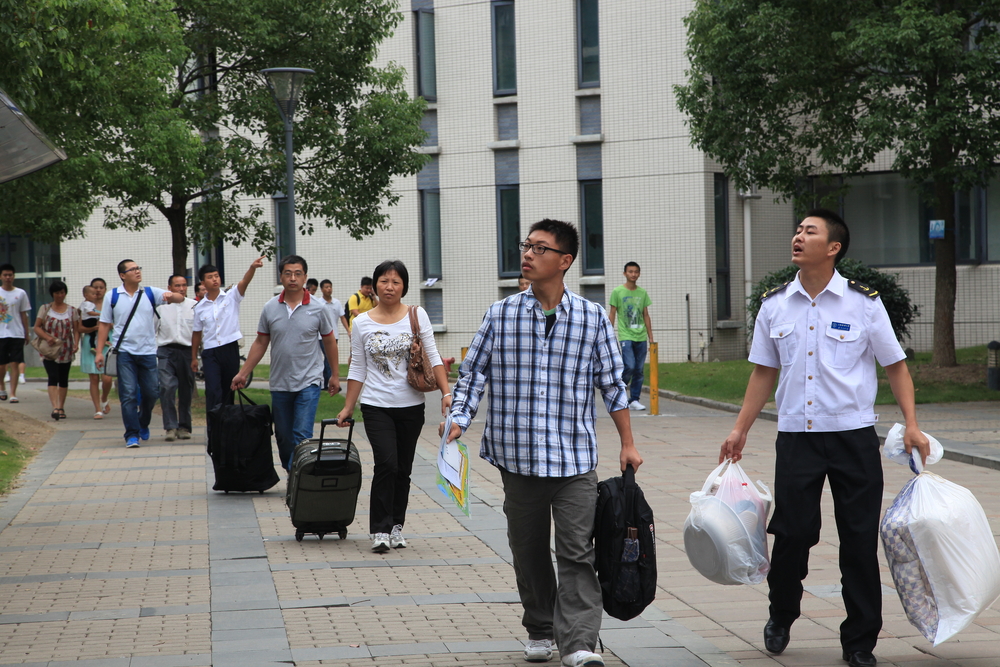 今年,学校共组织一千多名志愿者协助开展迎新工作。部分志愿者分赴上海火车站、火车南站、龙阳路地铁站迎接远道而来的新生及其家长,同时学校派出多辆大巴车将新生及家长接到临港校区。校园内,志愿者们有的帮新生扛行李,有的向新生分发《校园平面图》和《报到流程图》,有的则回答新生提出的各种问题,忙得不亦乐乎。