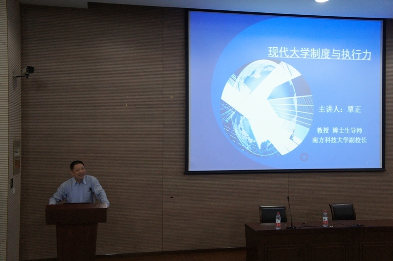 覃正教授在报告中从现代大学制度谈起,围绕大学招生改革、大学未来走向等问题,探讨了我国高校在制度改革及学生培养等方面所做的尝试,并从“明天的竞争者——今天怎样选拔、教育、培养”,“明天的执行力——今天的速度与激情”的角度诠释了现代大学制度与执行力的涵义。