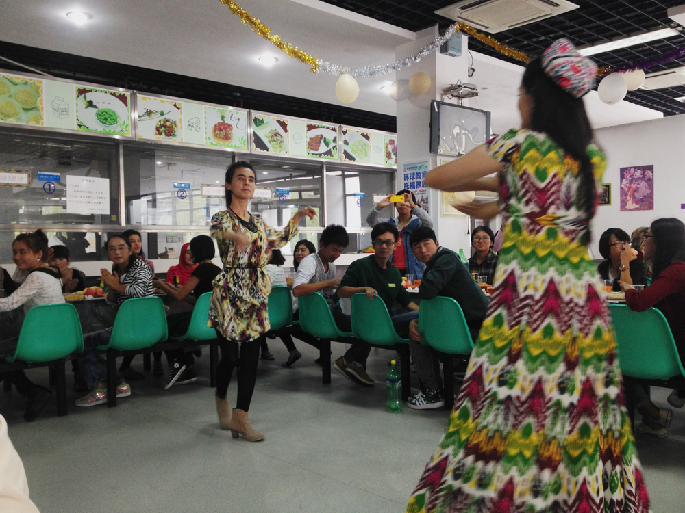 聚餐结束后,民族同学在学生服务中心举办了一场自编自演的联欢会,展现了能歌善舞的民族风情。