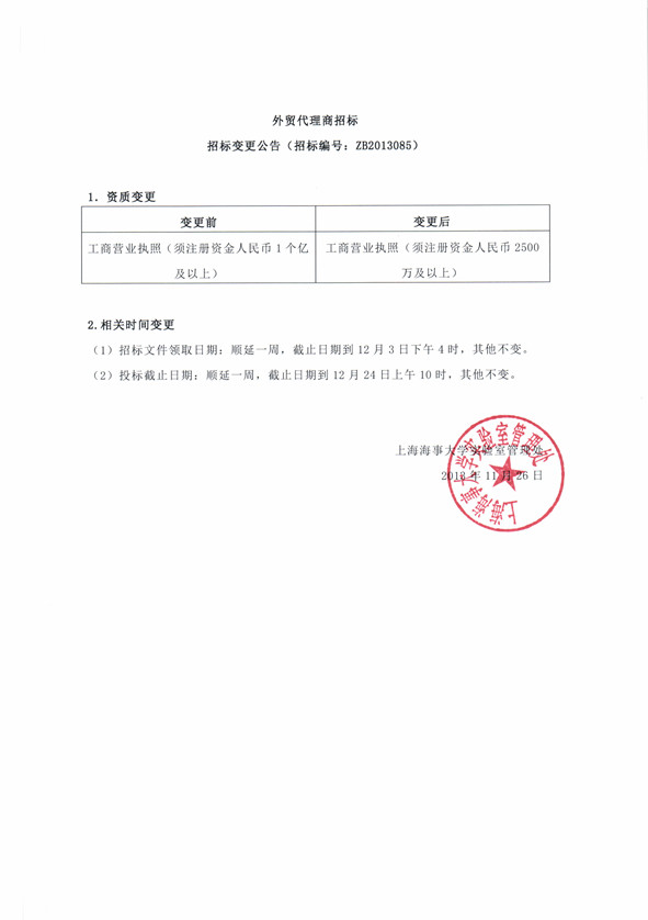 招标变更公告(招标编号:ZB2013085)