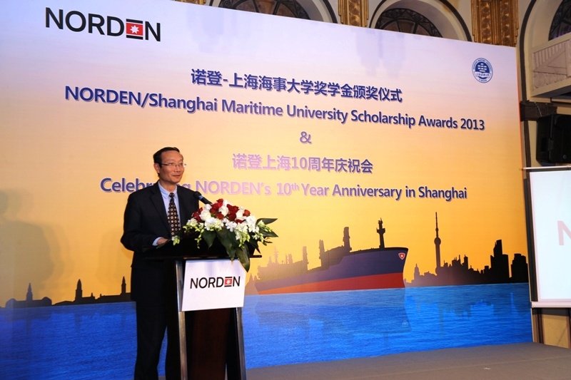 黄有方校长在致辞中感谢诺登公司多年来对上海海事大学的支持,表示诺登公司与我校的合作为培养和激励我校学生和教师起到了积极作用。上海海事大学一直关注着航运业的发展趋势,期待能与企业界开展更多的交流与合作。他对诺登公司上海办公室成立10周年表示祝贺,并祝愿诺登公司今后有更好的发展。