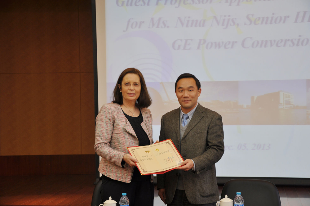 12月5日,通用电气能源集团全球人力资源总监Nina Nijs女士上海海事大学客座教授授聘仪式举行。王海威副校长出席仪式并为Nina Nijs女士颁发客座教授证书。国际交流处、经济管理学院负责人及师生代表等出席授聘仪式。授聘仪式结束后,Nina Nijs女士为我校师生做了题为“Collaboration in Talent Development”的主题演讲,以通用电气为例介绍了人力资源培养的机制与方法,并与学生进行了互动。撰稿、摄影:国际交流处、经济管理学院