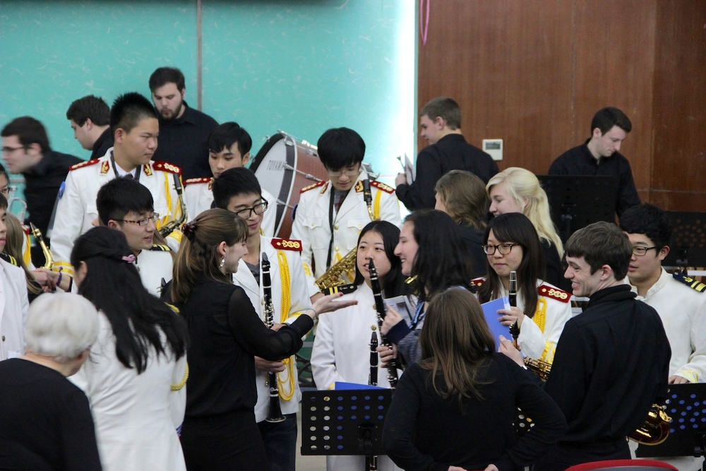 1月13日晚,盖茨堡学院桑德曼交响管乐团和上海海事大学交响管乐团在邦建报告厅进行了交流音乐会。盖茨堡学院校长Janet Riggs、桑德曼音乐学院院长Kay Hoke带领乐团来到了我校,盖茨堡学院在中国的三十多位校友也参加了此次演出。