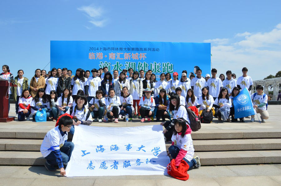 3月23日上午9点,2014上海市民体育大联赛路跑系列活动“临港•南汇新城杯”滴水湖健康跑于鸣枪开赛,包括上海海事大学125位志愿者在内的3000名志愿者参与本次活动。