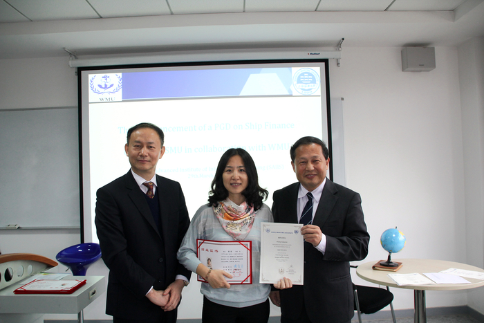 3月29日下午,上海高级国际航运学院首期航运金融高级研修班结业典礼在东明路校区举行。世界海事大学副校长马硕教授、上海海事大学副校长金永兴教授出席结业仪式并讲话。仪式由上海高级国际航运学院常务副院长余思勤教授主持。