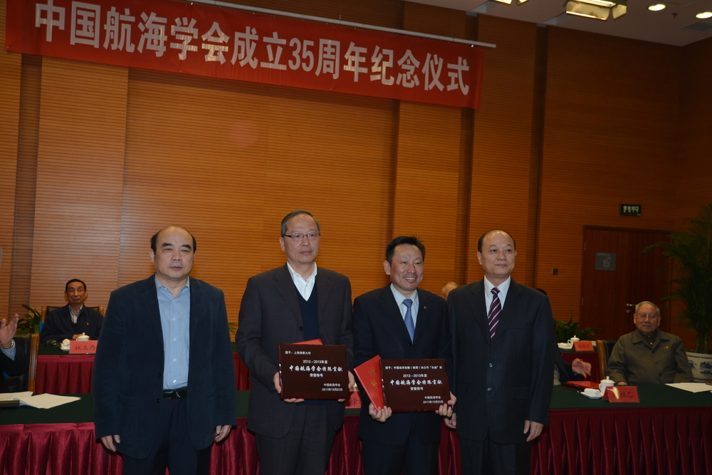 中国航海学会于4月1日上午在北京科学会堂举行学会成立35周年纪念仪式。在该仪式上,中国航海学会宣布:授予单位会员上海海事大学和中国远洋运输(集团)总公司永盛轮2012-2013年度“中国航海学会特殊贡献荣誉称号”;授予刘同安等50位同志“中国航海学会终身成就荣誉称号”。刘同安同志曾任我校教务处长和管理学院院长等职务。撰稿:校长办公室;摄影:中国航海学会