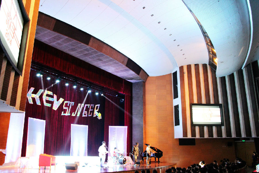 4月10日晚,我校第26届校园十大歌手决赛在大礼堂圆满落幕。大赛邀请到上海东方娱乐传媒著名主持人高山峰先生、司雯嘉女士,以及我校第25届校园十大歌手比赛冠军周沁担任评委,吸引了约八百五十名观众观赛。