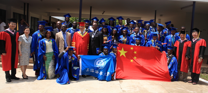 本届“物流管理”项目共有34名学生圆满完成学业,获得了我校毕业证书及学士学位证书。学生来自加纳、喀麦隆、多哥、尼日尼亚、刚果等5个国家。本项目最佳学生、来自喀麦隆的Cheikwi Che同时被评为中西非地区海事大学唯一的2014年最佳毕业生。Cheikwi Che作为学生代表在毕业典礼上发言,他在发言中回忆了在阿克拉、上海两地校园的学习与生活,祝愿母校上海海事大学与中西非地区海事大学越办越好。