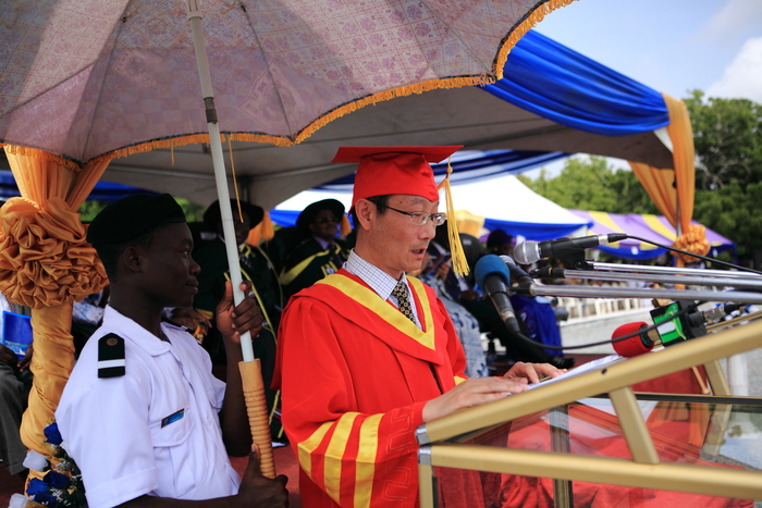 加纳外交部长、加纳交通部长、塞拉利昂交通部长、中西非海事大学校长分别在毕业典礼上致辞,高度评价了我校与中西非地区海事大学合作举办的“物流管理”本科项目,感谢我校来加纳办学,为中西非地区的人力资源建设作出了贡献。