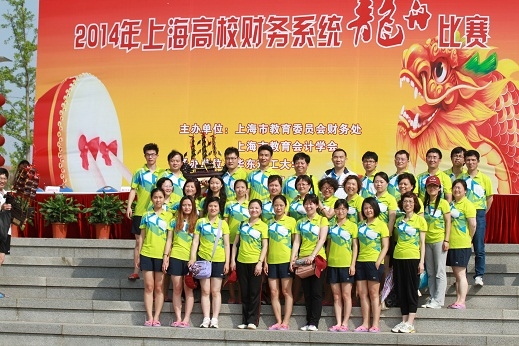 6月15日,由市教委财务处、市教育财会学会举办的2014年上海高校财务系统阳光体育大联赛在华东理工大学奉贤校区举行。本次比赛有来自上海35所高校的27支参赛队伍参加。上海海事大学财务处代表队在王海威副校长的带领下,取得了第三名(二等奖)的好成绩。在为期半个月的训练中,财务处的老师们每日中午头顶骄阳,冒着酷热艰苦训练,在龙舟比赛中团结拼搏、奋勇向前,最终取得佳绩。