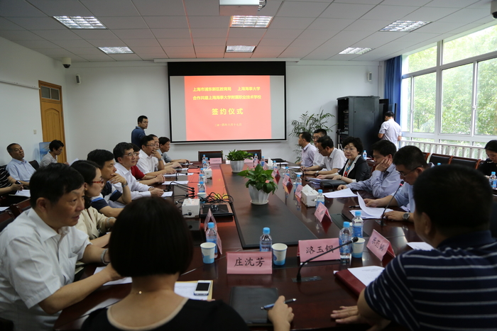 浦东新区教育党工委书记、教育局局长王晓科和上海海事大学副校长杨万枫代表双方,签订了《浦东新区教育局与上海海事大学合作共建上海海事大学附属职业技术学校协议》。
