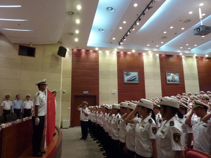 开班仪式前,培训班学员们进行了庄严的入局宣誓,并合唱了《中华人民共和国国歌》和《海事之歌》。