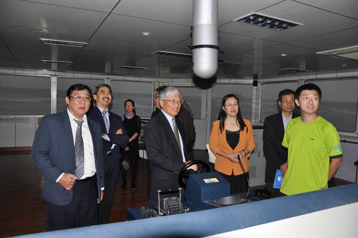 会见结束后,来宾一行参观了我校航海模拟器、码头集成仿真实验室、自动化机舱等实验室。