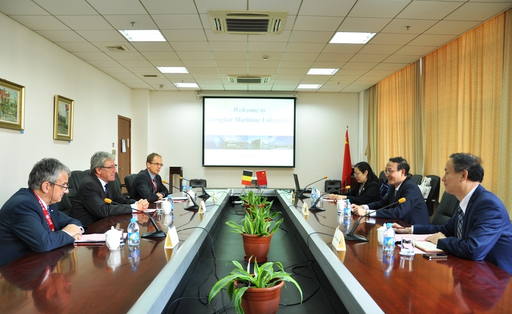 10月14日下午,上海海事大学黄有方校长、金永兴副校长会见了来校访问的安特卫普大学校长Alain Verschoren、安特卫普大学科学研究委员会主席Jean-Pierre Timmermans一行。