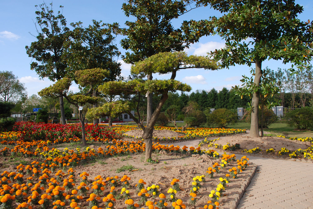 此外,本次开园策划中,为让游园师生充分体验休闲、放松心情,园内添置了木质秋千、石质桌椅,还在池塘内放入了可爱的“小黄鸭”。时值金秋十月赏菊时,花圃特意开辟1370㎡左右的菊花布展区,以菊花、悬崖菊、大立菊、塔菊等再配以草花和不同元素,规划、搭配出各具特色的菊花景点。