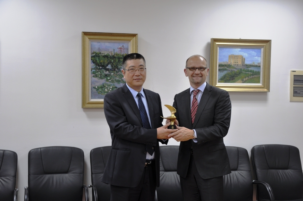 访问团代表Wilfred Von Rath董事表示与上海海事大学的合作对曼恩集团非常重要,曼恩集团希望继续加深同上海海事大学的合作。
