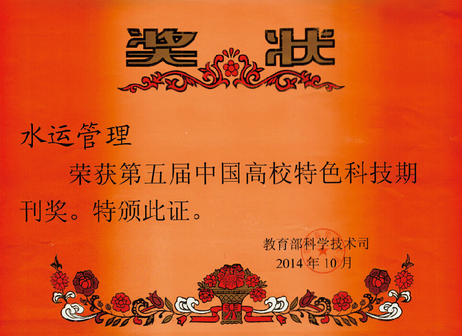 日前,第5届中国高校精品•优秀•特色科技期刊奖颁奖大会在广州举行。来自全国高校科技期刊编辑出版单位的400余名代表参加颁奖大会。本届评比有49种期刊获精品期刊奖、108种期刊获优秀期刊奖、30种期刊获特色期刊奖。上海海事大学《水运管理》获中国高校特色科技期刊奖,这是该刊2008年获此奖后的再次获奖。此前,我校《集装箱化》曾获2010年第3届和2012年第4届中国高校特色科技期刊奖。
