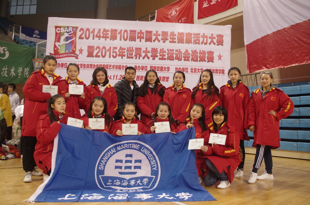 第十届中国大学生健康活力大赛暨2015年世界大学生夏季运动会选拔赛于11月26—30日在成都西南交通大学体育馆举办。上海海事大学健美操队不畏强手,击败众多体育院校和健美操高水平院校,获得全国第七名的好成绩,同时获得了世界大学生运动会的选拔资格。