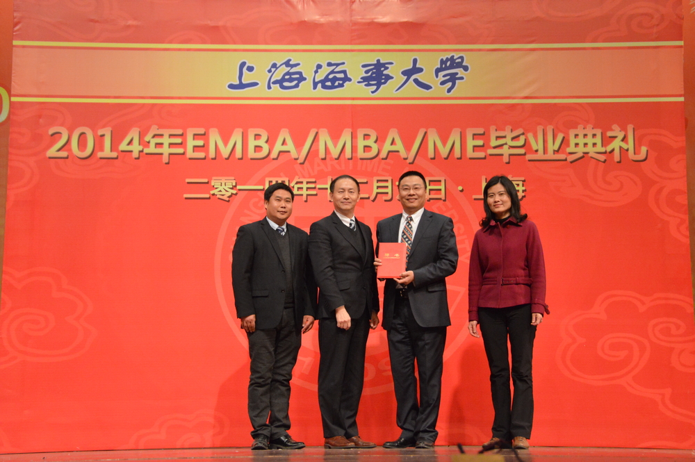 金永兴副校长在致辞中勉励毕业生要积极实践、不断开拓,遵守职业道德,肩负社会责任,在各自单位积极奉献、大展宏图,为实现“中国梦”做出自己的贡献。同时金校长欢迎2014级EMBA新同学的到来,感谢他们对海事大学的信任,祝愿新学员在未来几年学有所成。