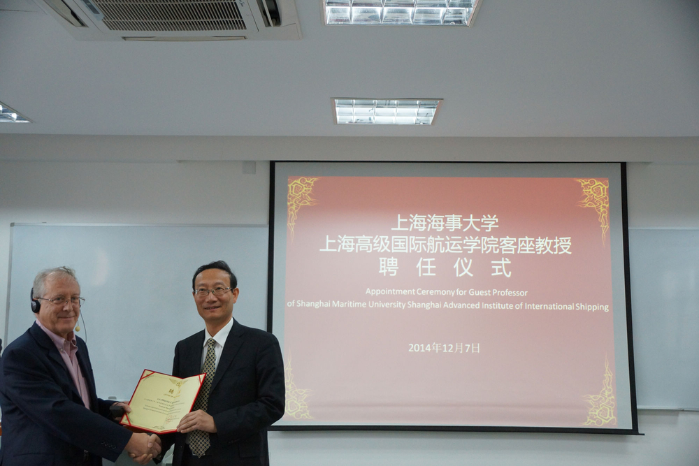 此次课程吸引了众多校友前来旁听。国际航运著名专家、牙买加海运学院校长Fritz Hire Augustus Pinnock也慕名远道而来。期间,上海海事大学黃有方校长为马丁·克里斯多夫教授颁发了客座教授聘用证书。