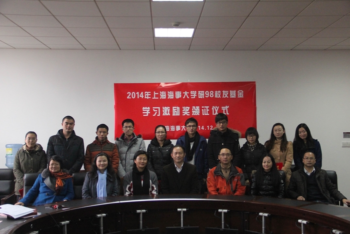 12月10日, “上海海事大学研98校友基金研究生学习激励奖”颁证仪式在科研楼512室举行。金永兴副校长及相关部门负责人,98级研究生校友代表及获奖研究生出席了颁奖仪式。