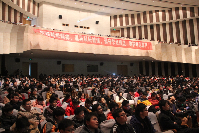 金永兴副校长首先致辞,感谢肖云书记对海大师生的关爱及对人才培养的高度责任感,并强调了科学道德和学风建设宣讲教育活动的重要性。他希望通过加强宣传教育,正确引导广大师生养成科学研究精神,坚决抵制学术不端行为,特别希望广大研究生通过学习,认真领会国家重大工程实现过程中老一辈科学家的优良风范和品质,增强历史使命感和责任感,迈好人生的每一步。