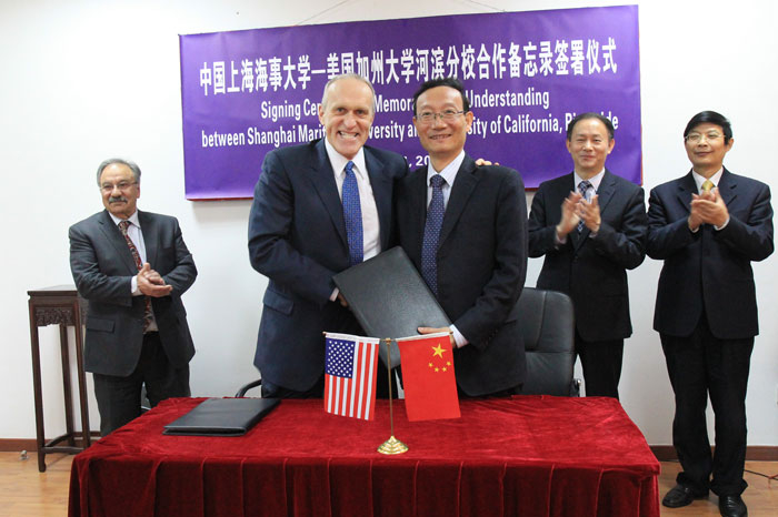 黄有方校长介绍了我校办学情况。他表示,上海有着天然的区位优势来发展航运与物流产业,目前上海正在快速推进国际航运中心与自贸区建设,更加为物流与航运产业的发展提供了契机,上海海事大学将藉此发展机遇推动物流与航运发展研究,培养更多高端国际化物流与航运人才。加州大学河滨分校作为美国一所知名院校在物流等研究领域实力雄厚,希望双方强强联手,在科研、学生交换学习、师资交流等方面开展合作。