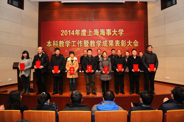 1月21日,上海海事大学2014年度本科教学工作暨教学成果表彰大会在图书馆中远报告厅顺利召开。会上对获得专业建设奖、课程建设奖、教材建设奖、实验室建设奖、教学成果奖、大学生科技创新学科竞赛活动优秀组织奖以及优秀指导教师奖的单位和个人进行了表彰。校党政领导,各职能部门负责人、各学院党政负责人,教授、系主任、教研室主任、专业负责人等出席会议。