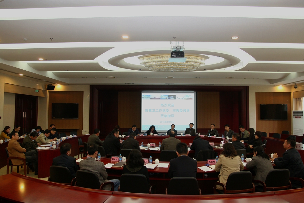 金永兴书记主持座谈会,并代表学校对市教卫工作党委、市教委领导长期对学校的支持表示衷心感谢。