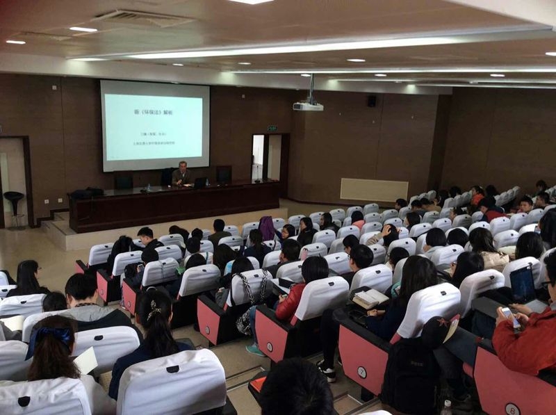 之后,王曦教授作了题为“我与《环保法》——新《环保法》中的制度创新”的专题讲座。海大民建全体会员及法学院师生100余人聆听了讲座。