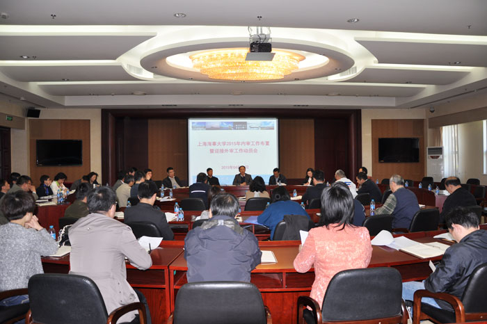 4月23日,上海海事大学2015年内审工作布置暨迎接外审工作动员会在临港校区行政楼128会议室召开。学校质量管理体系管理者代表金永兴书记及肖宝家副校长、杨万枫副校长、王海威副校长出席会议。全体内审员、各学院(部门)办公室主任和质量管理办公室成员参会。会议由质量管理办公室主任李新伟主持。
